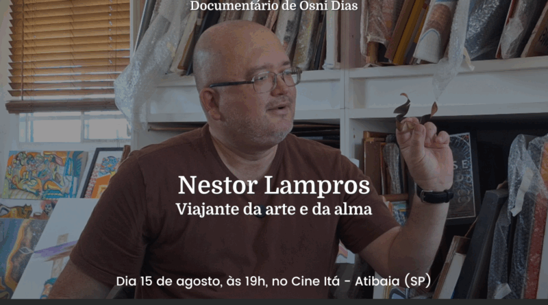 Na próxima sexta-feira, 15 de agosto, às 19h, o Cine Itá, em Atibaia (SP), recebe a exibição do documentário Nestor Lampros, viajante da arte e da alma. A produção retrata a trajetória do artista plástico, poeta e escritor Nestor Lampros, figura marcante da cena cultural brasileira, que levou o nome de sua cidade para diferentes cantos do país e do mundo.